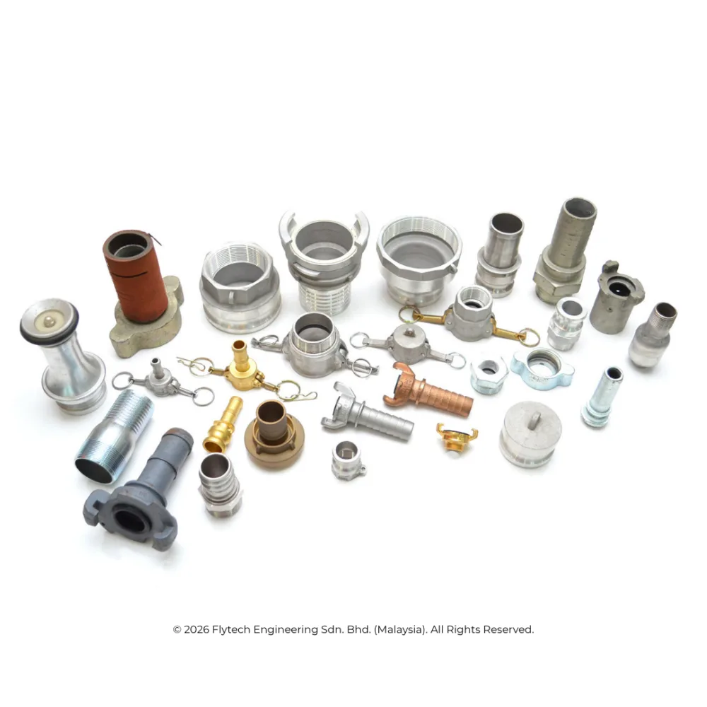 Precision hose couplings and fittings, including Camlock, Quick Release, and Flanged connections. Engineered for leak-proof performance in high-pressure industrial piping systems.