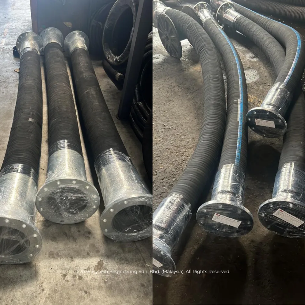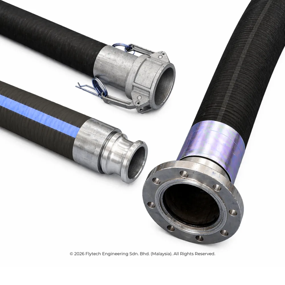 High-durability industrial rubber hoses for suction and discharge. Engineered for abrasion resistance in oil & gas, palm oil and construction. Ready stock Malaysia.