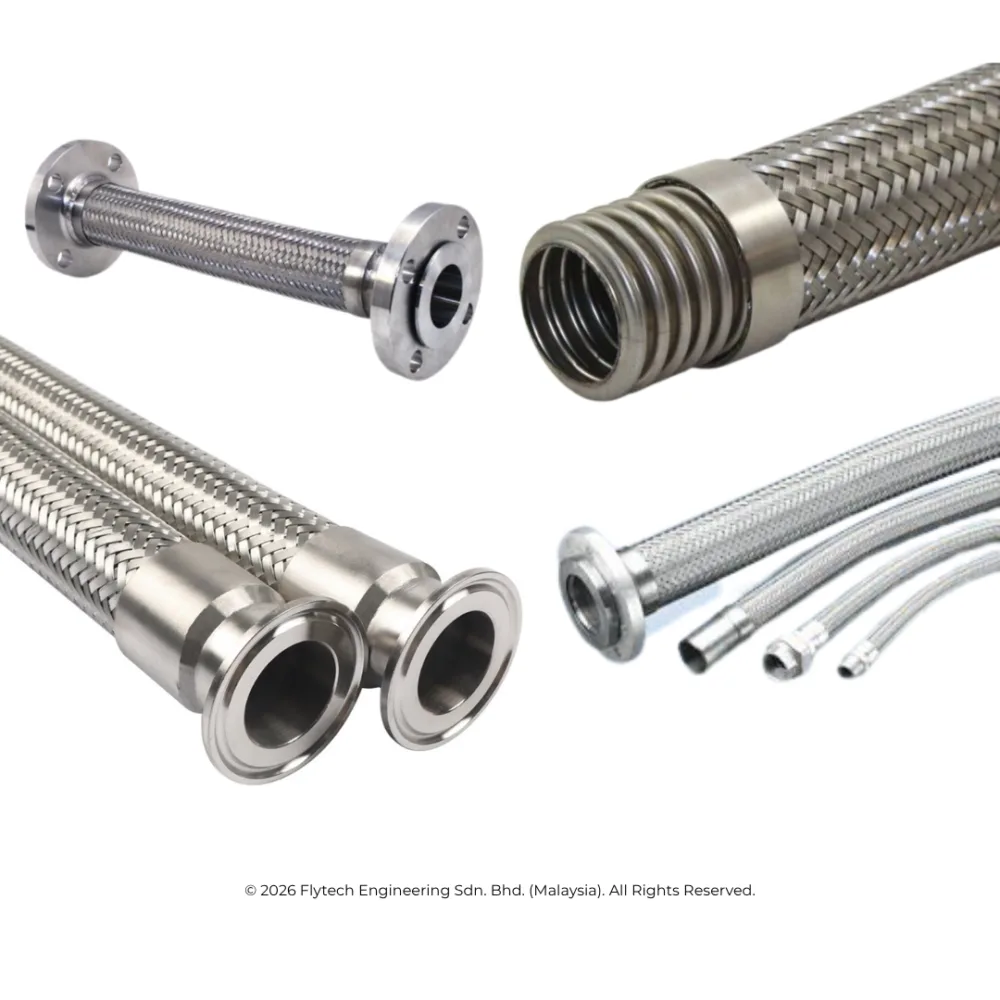 Flexible stainless steel corrugated hoses SS304/SS316 for extreme pressure, high-temperature and corrosive environments. Chemical transfer, steam and critical piping. Hydrotest with cert available. Ready stock Malaysia.