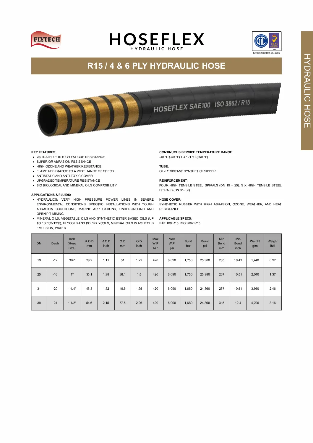 HOSEFLEX Hydraulic Hose SAE100 R15